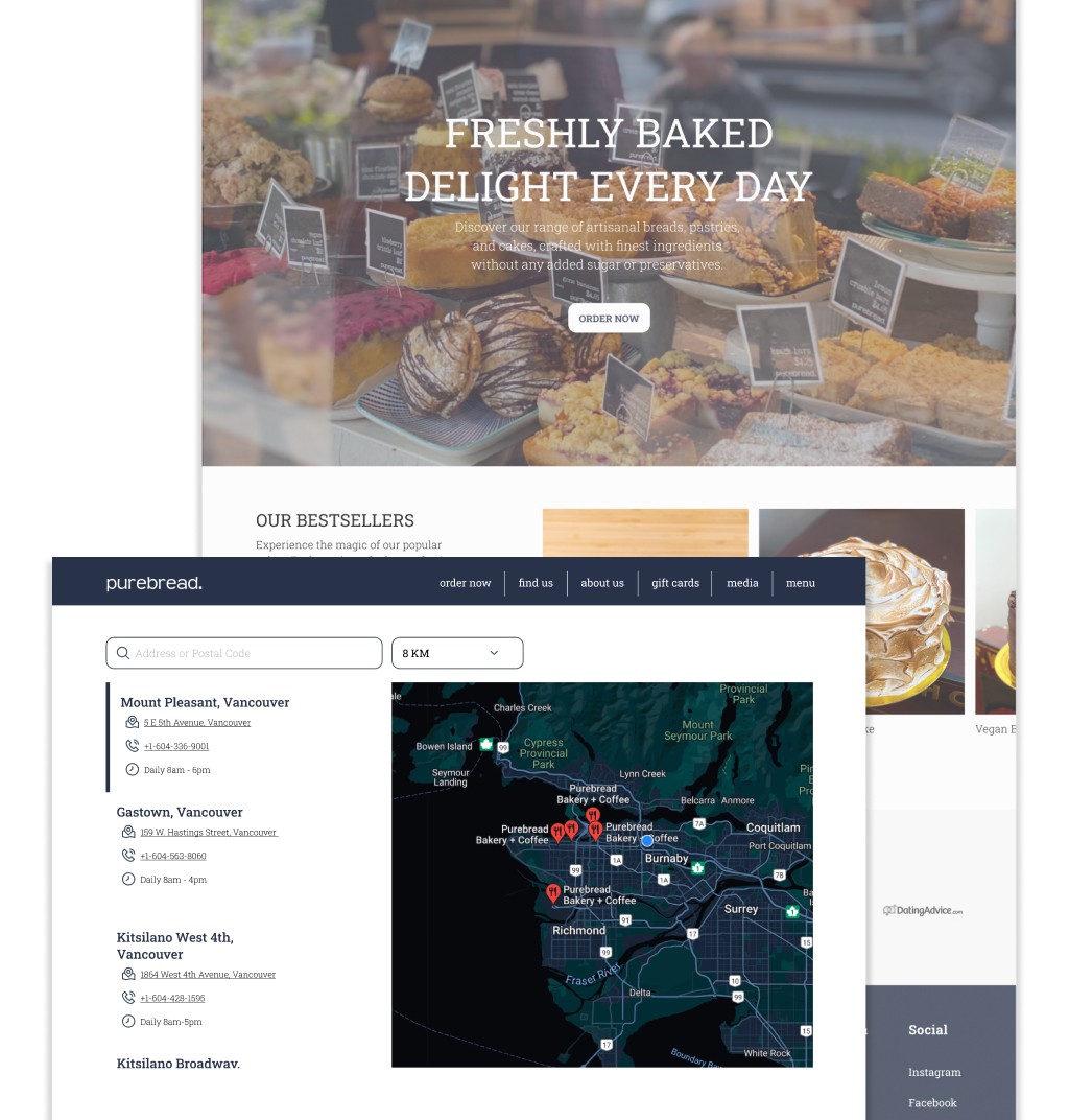 Our team collaborated with Jennifer, Chief of Marketing at Purebread, to explore opportunities for improving the bakery’s digital presence. In our initial meeting, she highlighted two key goals: increasing awareness of Purebread’s online ordering option and evaluating the effectiveness of their current website.